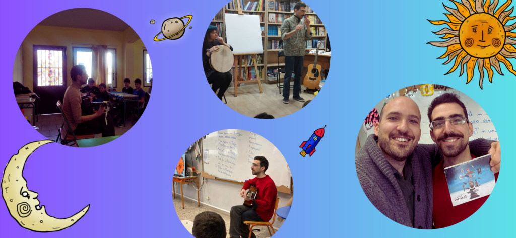 Σε αυτό το εργαστήρι τα παιδιά μυούνται στην δημιουργία στίχου και μουσικής από απλές ιδέες και σύμφωνα με τις γνώσεις και τα εργαλεία που κατέχουν ήδη. Αρχικά μέσα από παιχνίδια με τις λέξεις και ασκήσεις ενεργοποίησης την φαντασίας φτιάχνουμε τον στίχο. Στην πορεία βάζουμε μελωδία και ρυθμό. Ακολουθεί η ενορχήστρωση με απλά όργανα που δίνονται στα παιδιά. Έπειτα το ηχογραφούμε και τέλος στέλνουμε το δικό μας μουσικό τηλεγράφημα στο επόμενο σχολείο δημιουργώντας αλυσίδα αδελφοποίησης με σχολεία από όλη την Ελλάδα. Το τραγούδι μετά από επεξεργασία θα αποσταλεί στο σχολείο για ψυχαγωγική ή εκπαιδευτική χρήση και θα προωθηθεί στο επόμενο σαν…« Μουσικό Τηλεγράφημα ». Το Εργαστήριο μπορεί να πραγματοποιηθεί στο χώρο του σχολείου κατά το πρωινό ή και το ολοήμερο/διευρυμένο πρόγραμμα.(Νηπιαγωγείο-Δημοτικό). Ενδύκνυται να συμπεριληφθεί σαν δράση στα εργαστήρια δεξιοτήτων δημιουργώντας τραγούδια πάνω σε συγκεκριμένη θεματολογία (συμπερίληψη , διαφορετικότητα , ταυτότητα κ.τ.λ.)